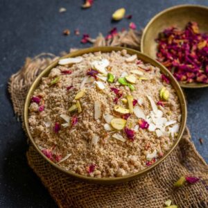 Gond, wheat flour, desi ghee, dry fruits – high energy bhog